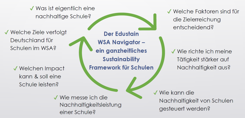Der #Edustain WSA Navigator ist ein begleitendes Werkzeug für Schulen zur ganzheitlichen nachhaltigen Schulentwicklung. Mit der entsprechenden Methodik,